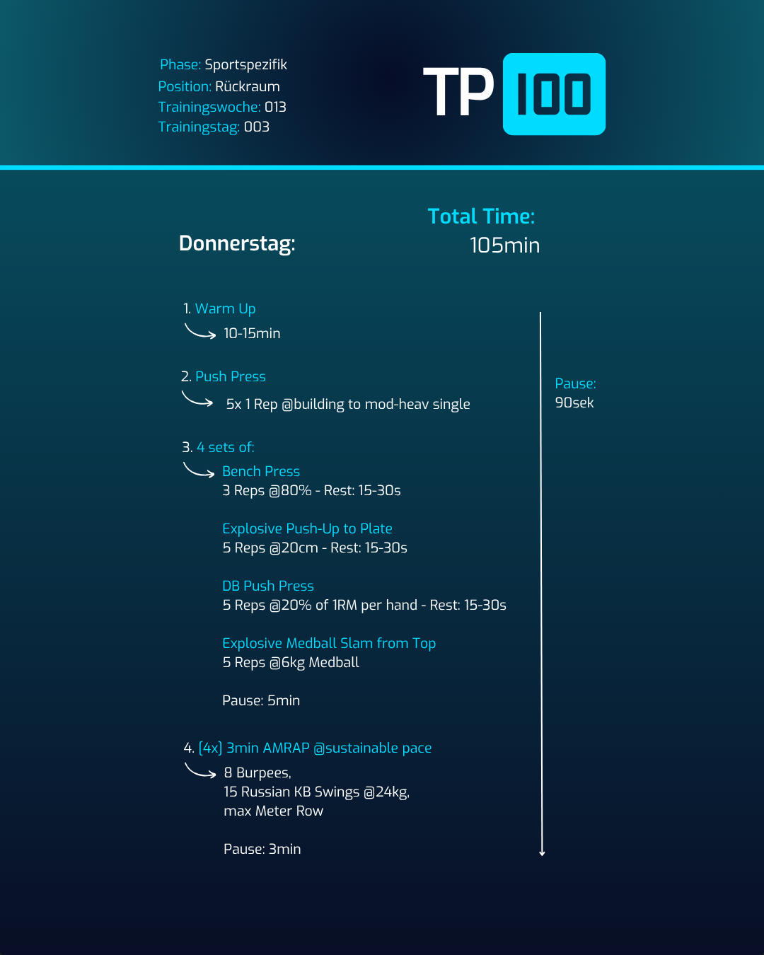 Werde stärker, explosiver und dominanter - mit TP100 Rückraum [Part 1], dem speziell entwickelten 15-Wochen-Trainingsplan für ambitionierte Handballspieler auf der Rückraumposition.